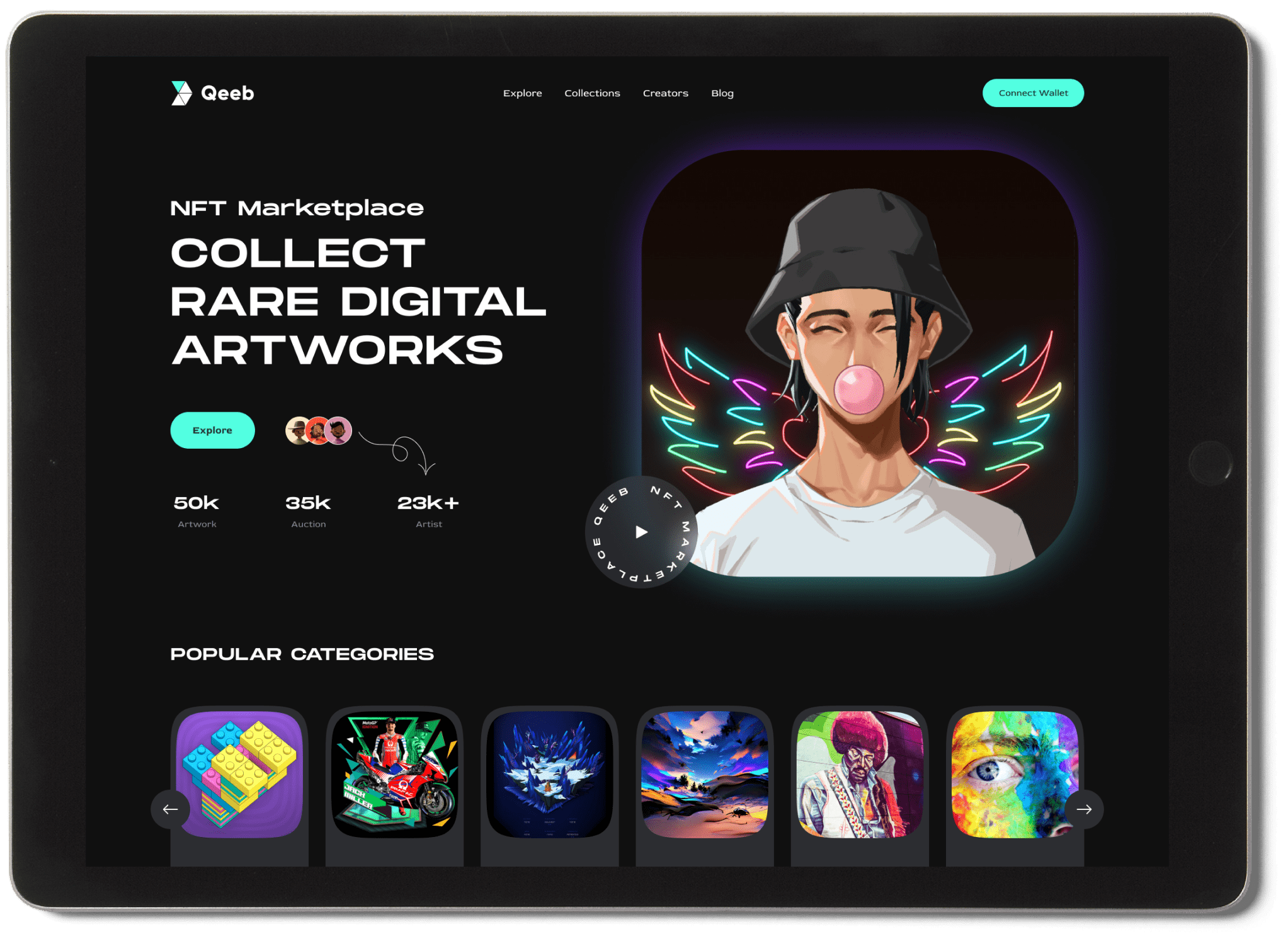 Qeeb is a unique place for emerging artists who provide a cut-out or watermarked files with any purchase. The artwork on the block is made available for purchase by the artist.